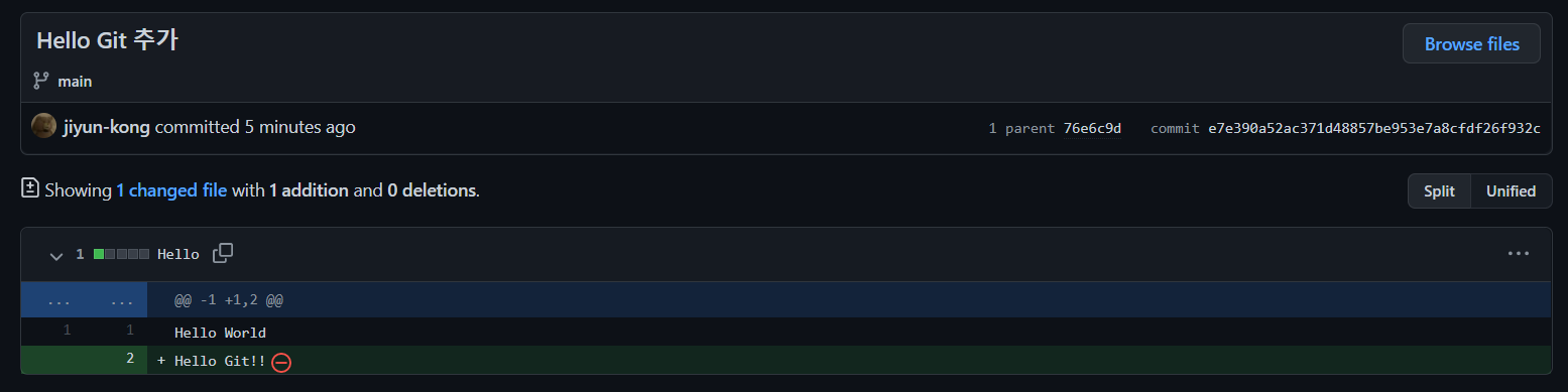 원격 저장소에도 수정된 내용이 잘 반영된 것을 확인할 수 있다.