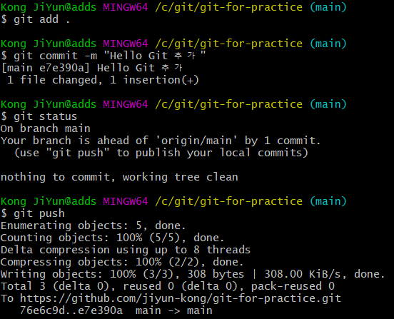 (4) 로컬에서 파일 수정해보고, push 실습하기