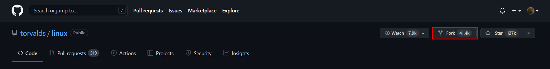 (1) fork : 다른 사람의 원격 저장소를 내 원격 저장소로 저장하기